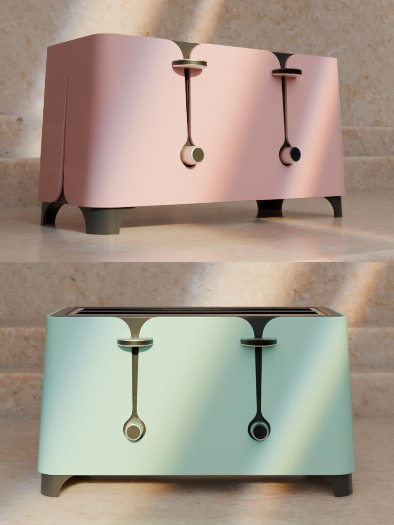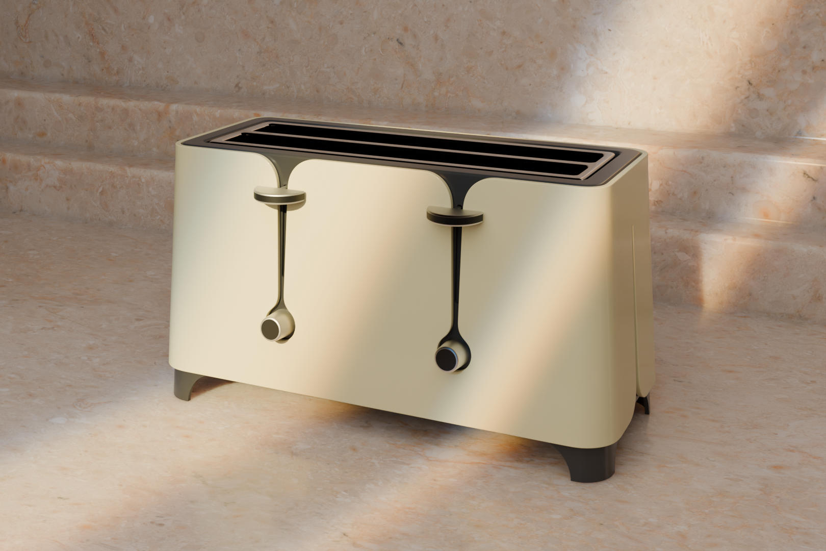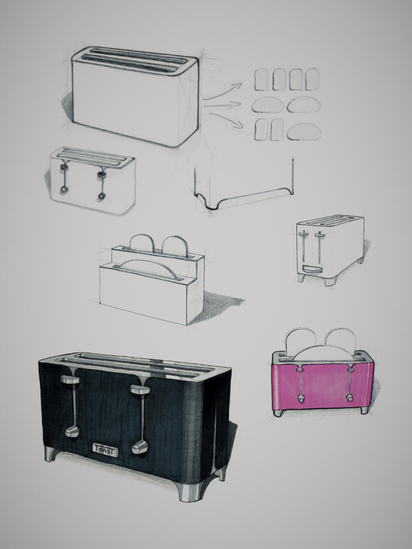 I designed one with easy operation, a button to slide the bread into the toaster, and a knob to set the duration of toasting, with each slot operated independently.