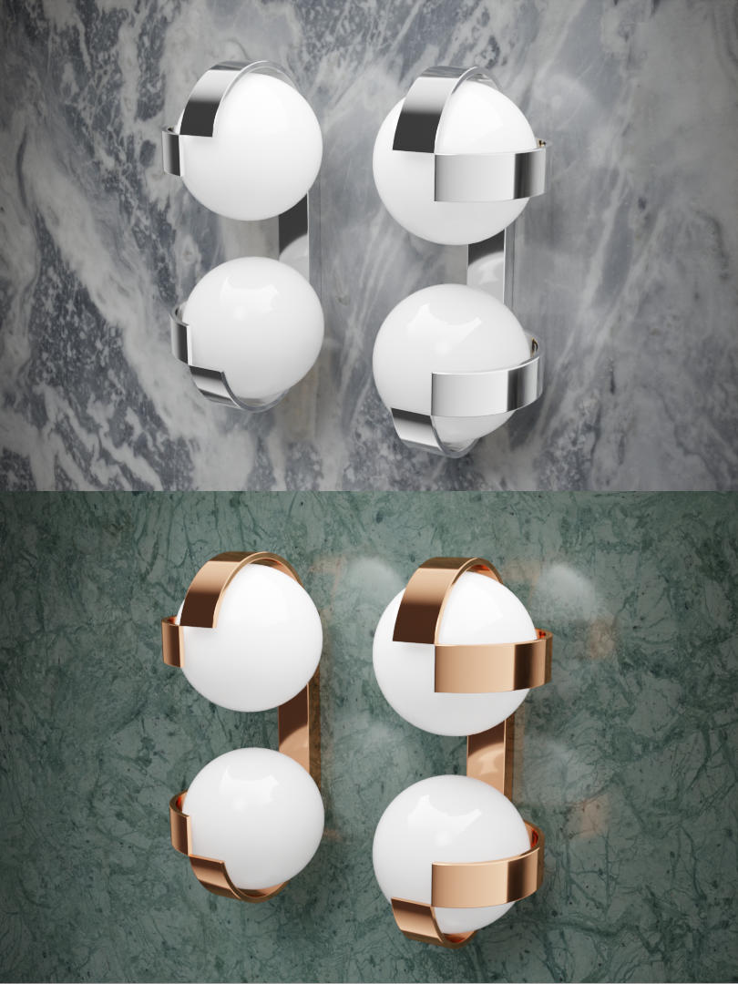 I wanted to design a lamp to mount beside a mirror. Going with a round but asymmetrical lamp that becomes symmetry when placed mirrored, Noa was born.